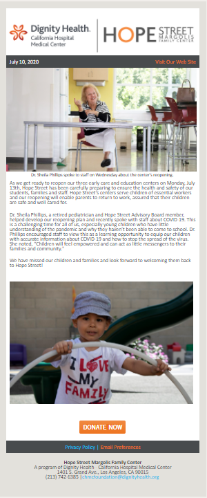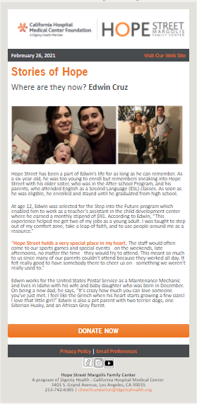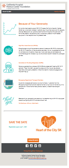 Emails are a great way to keep your clients, donors, or investors connected in-between the meetings or events. Let them know the latest impact by telling short yet impactful stories while using images or photos to enhance your message.